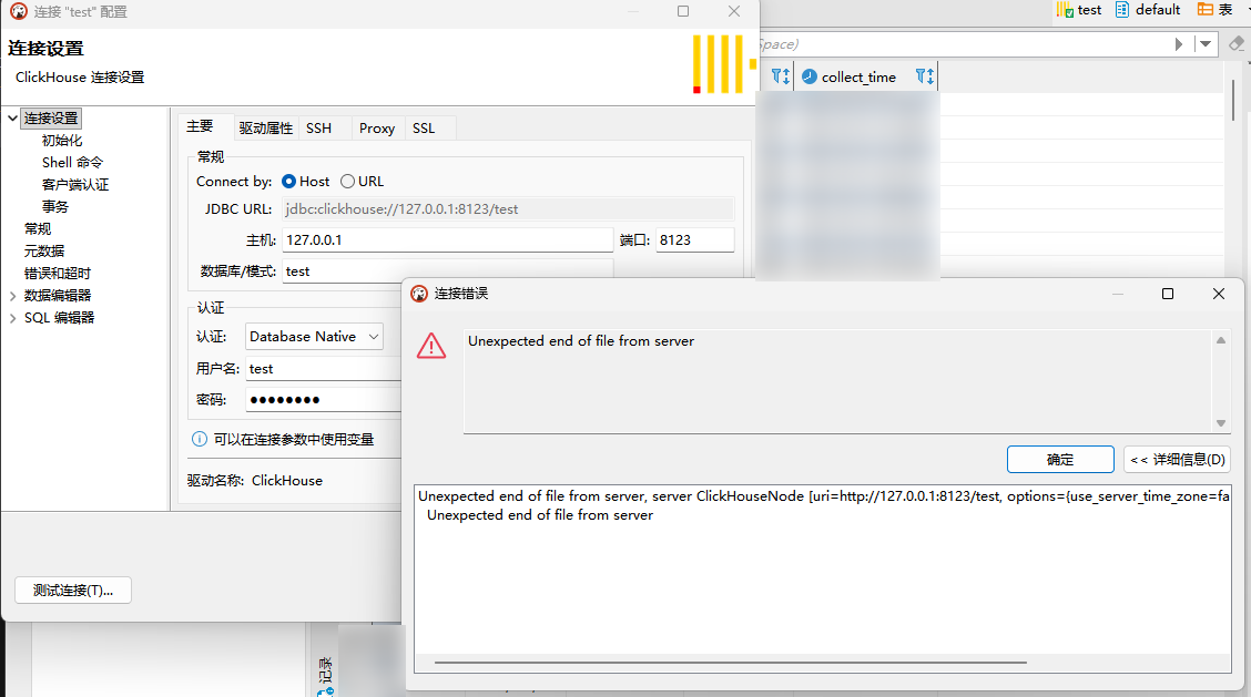 Unexpected end of file from server, server ClickHouseNode [uri=http://127.0.0.1:8123/test, options={use_server_time_zone=false,use_time_zone=false}]@1266016401