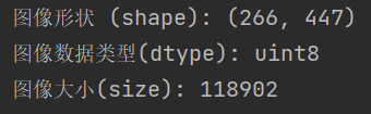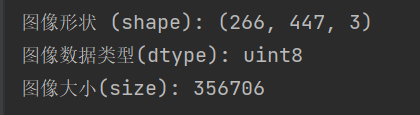 print("图像数据类型(dtype):",a.dtype)#无符号8位整数,用于表示像素值的范围在 0到255之间。