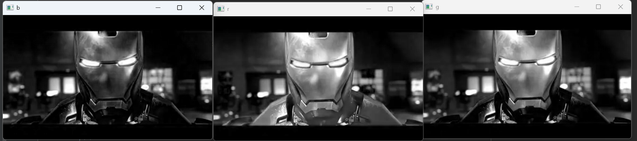 # b 包含蓝色通道 g 包含绿色通道 r 包含红色通道