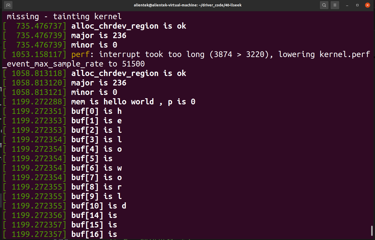 printk("buf[%d] is %c\n", i, mem[i]); // 将mem中的值打印出来