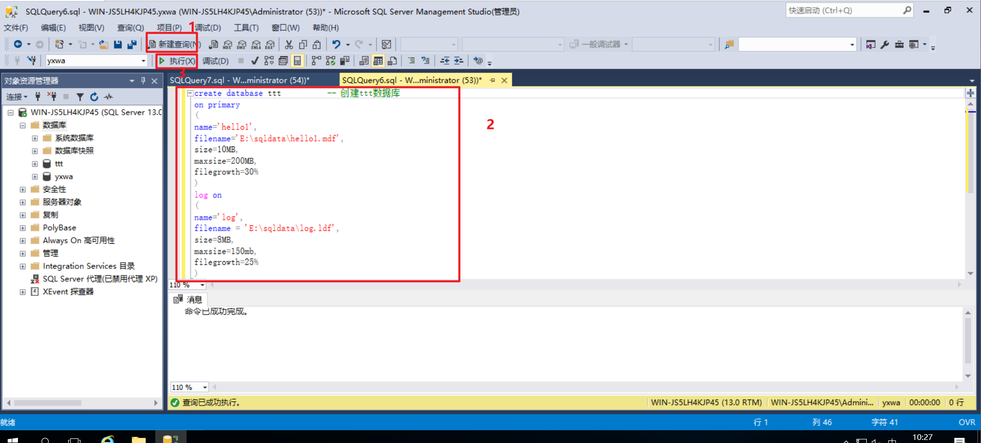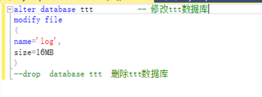 filegrowth=增量大小 // 数据库增长率,最后一行不用加逗号