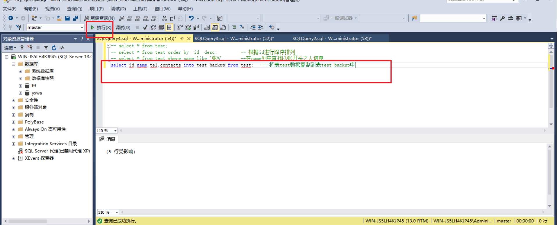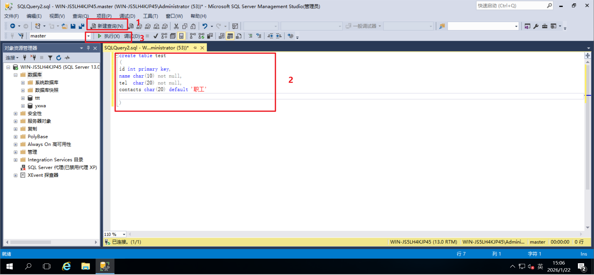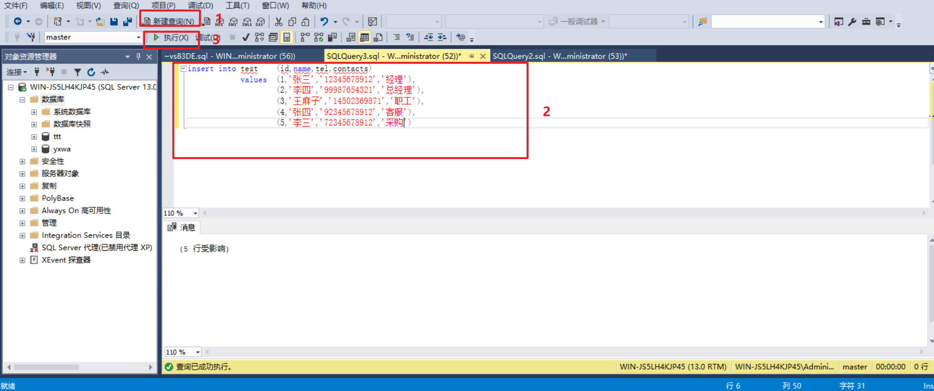 练习二:创建一个表,里面包含id,name,tel,contacts等信息,并用各种方式查询