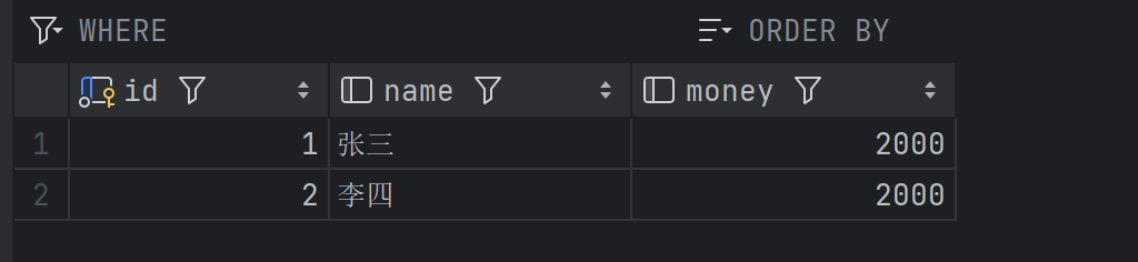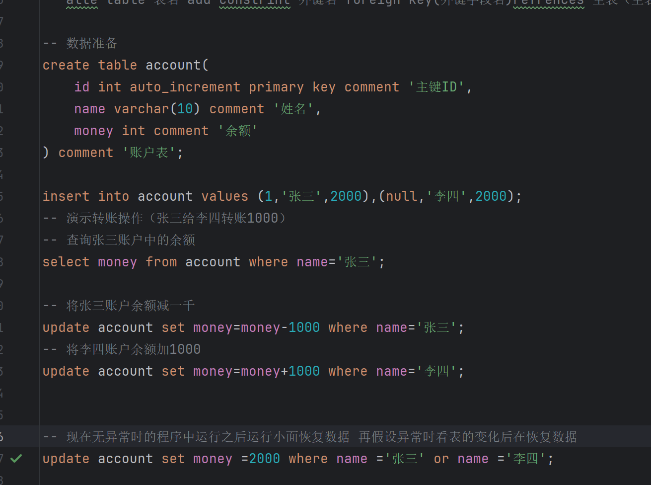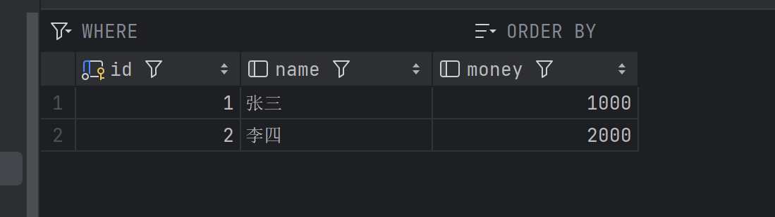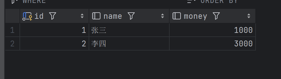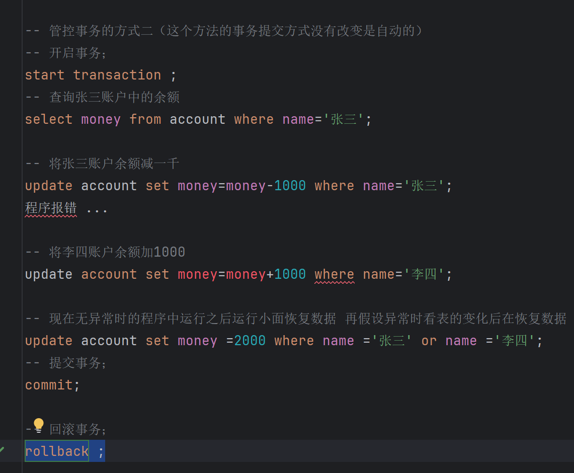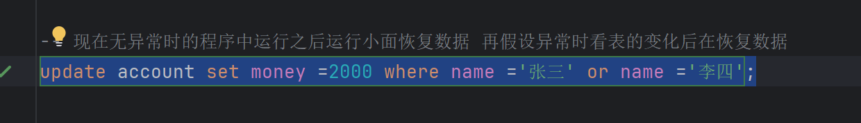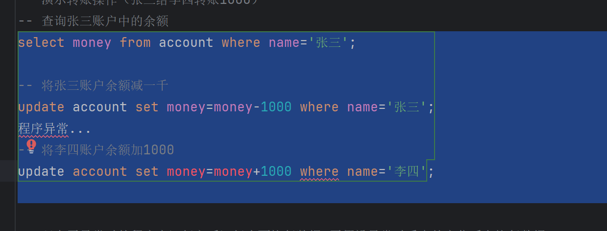 当程序有异常时:(转账会出现异常,系统中的金额记录也会出现出现错误)