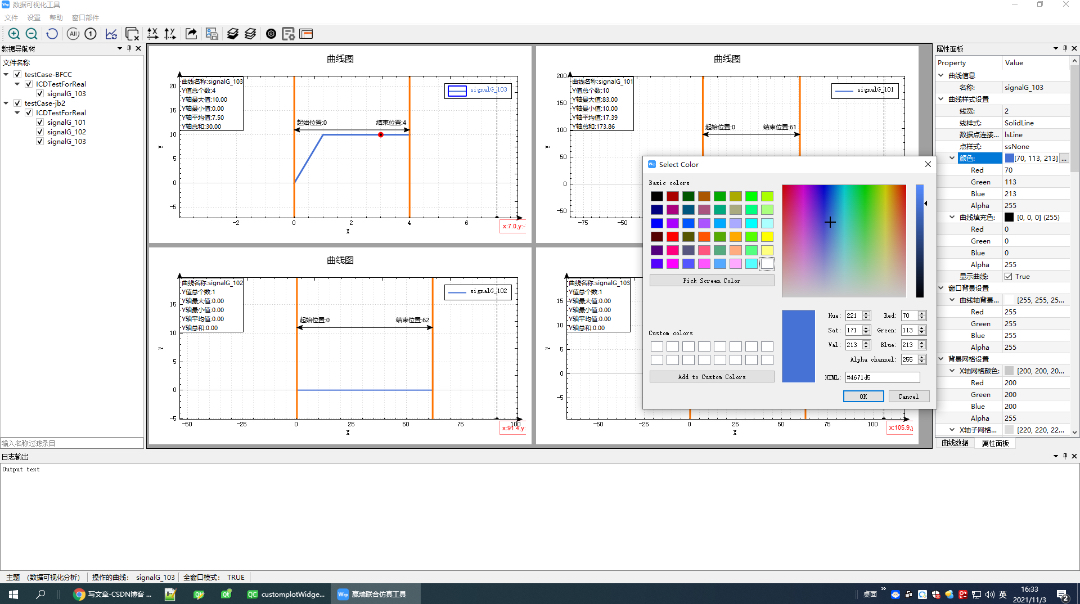 qcustomplot曲线图,数据可视化分析工具源码;加载excel和xml数据展示,数据接口可很方便扩展,数据展示具备多条曲线同时窗口展示,支持多窗口的鼠标同步操作(滚轮缩放,左键平移,右键框选等功能),添加阈值线-计算范围值;支持属性面板设置曲线样式,窗口布局类似于vs可以隐藏/显示dock窗口;代码可以扩展,采用qt5.9环境开发;