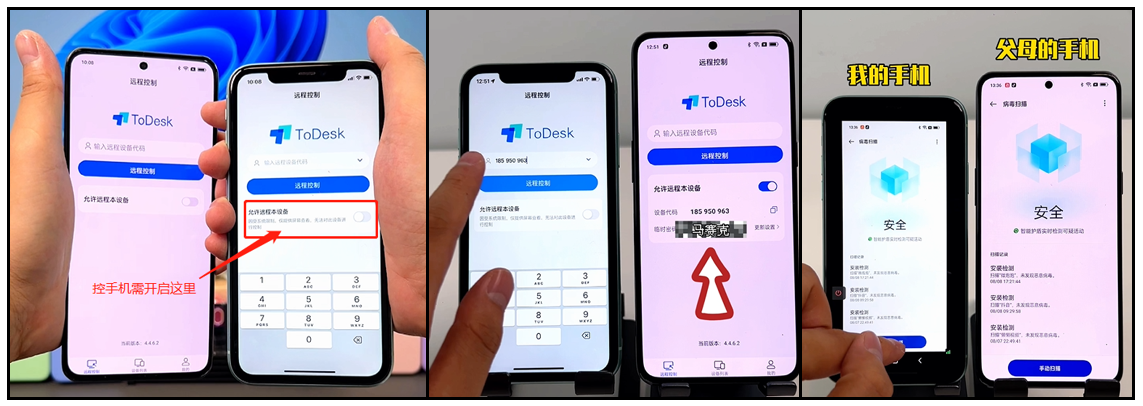 张女士的儿女、孙子在国外生活和留学,当出现手机使用问题便不知所措。过去,她只能通过电话艰难地描述画面等待被指导,效果甚微。现在,她只需让下载ToDesk,通过简单的连接码即可被远程代操作,快速解决问题。