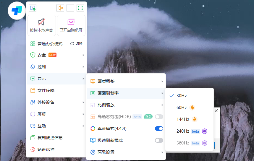 另外ToDesk针对专业应用优化了色彩准确度和图形渲染性能,开启4:4:4真彩模式后,可确保设计作品的色彩和细节在远程查看时保持高度一致,满足专业创作的严苛要求。