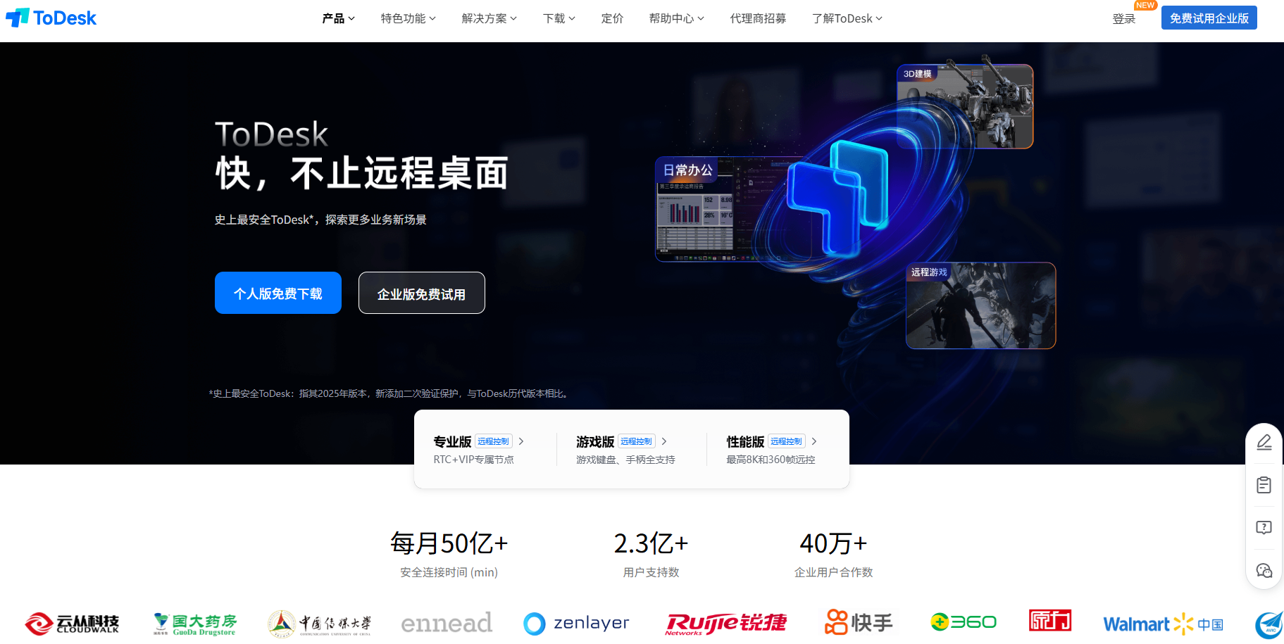 在这个数字化浪潮席卷全球的时代,远程协作已经从"可选方案"转变为"必要工具"。无论是跨国企业的团队协作,还是个人用户的技术支持,远程控制技术正以前所未有的方式连接着世界的每一个角落。而在众多远程控制解决方案中,小编强烈建议您选择一款像ToDesk这样集高效、安全与便捷于一身的工具,它正以其卓越的性能、安全和易用性,重新定义远程协作的边界,为各行各业带来前所未有的效率提升!