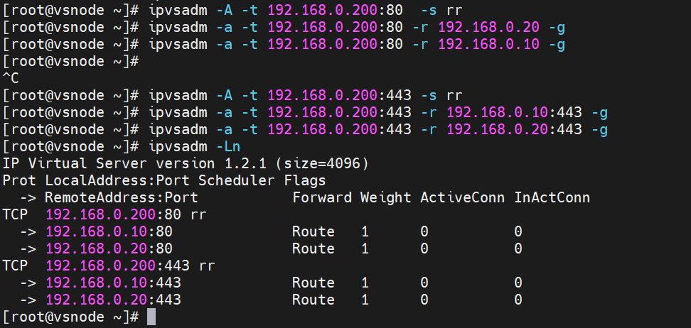 ipvsadm -A -t 192.168.0.200:443 -s rr