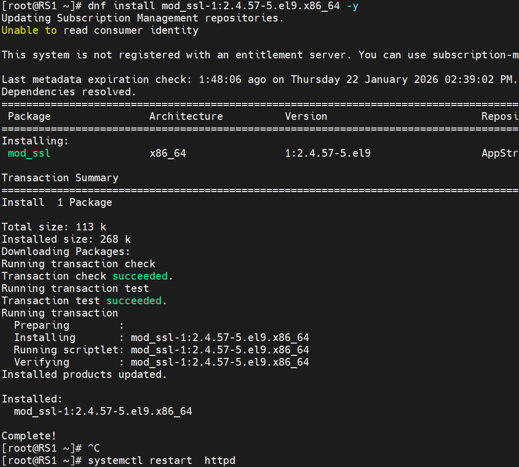 在每台后端 RS(RS1、RS2)上安装并启动 SSL 模块(以 RHEL/CentOS 为例):