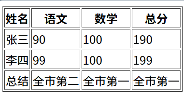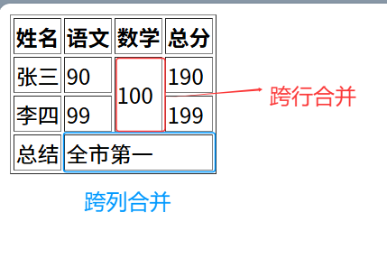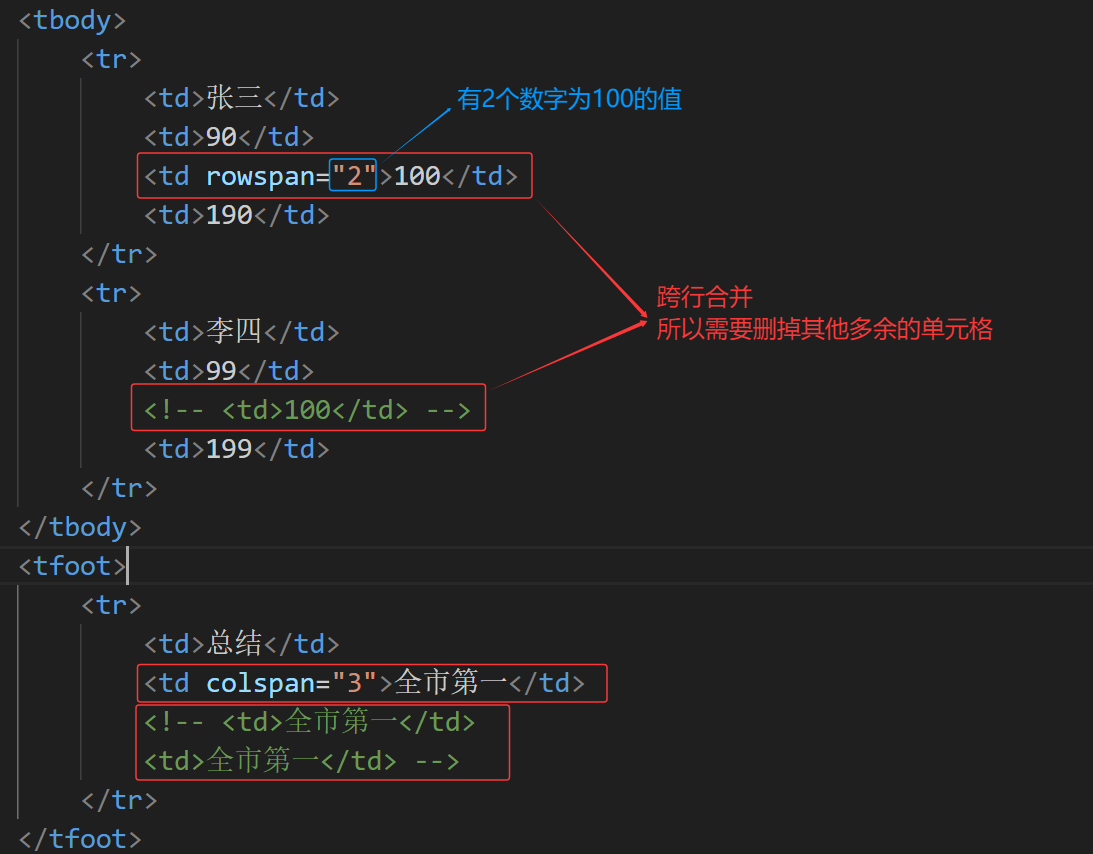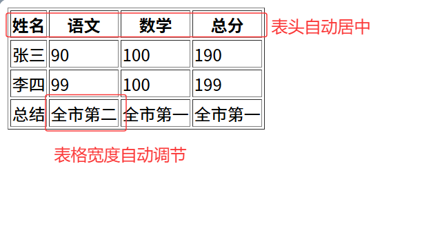 作用:用表格结构标签把内容划分区域,让表格结构更清晰。