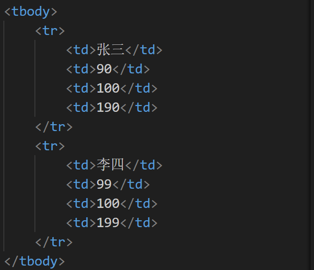 | tbody | 表格主体 | 主要内容区域 |