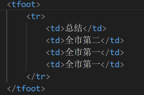 | tfoot | 表格底部 | 汇总信息区域 |