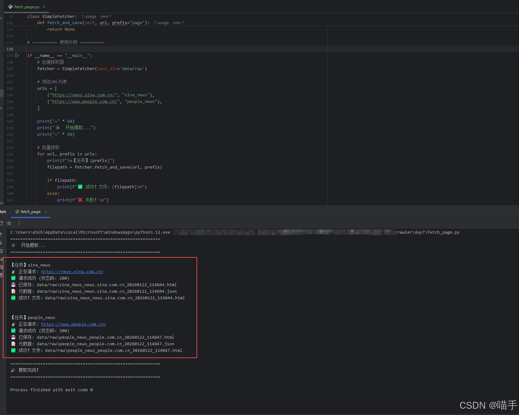 ✅ 可复用模板:SimpleFetcher 类可用于后续项目