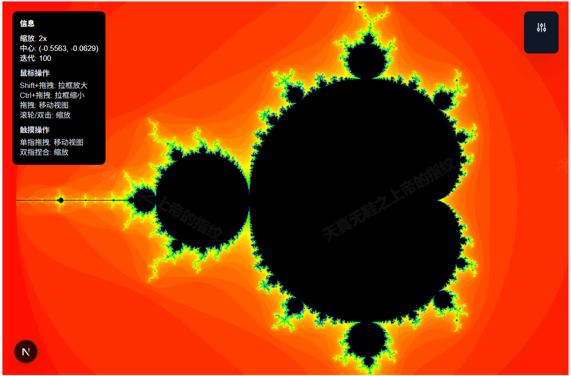一个基于 Next.js 构建的沉浸式曼德勃罗集(Mandelbrot Set)探索工具,提供丰富的交互功能和精美的视觉效果。