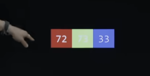 Let me just ballpark that the 72, it feels like a medium amount of red because it's in between 0 and 255, 73 is a medium amount of green, and 33 of blue is just a little bit. So if you combine a medium amount of red, green and a little bit of blue, anyone want to guess what color of the rainbow this is ? It's a little more yellow than it is brown.