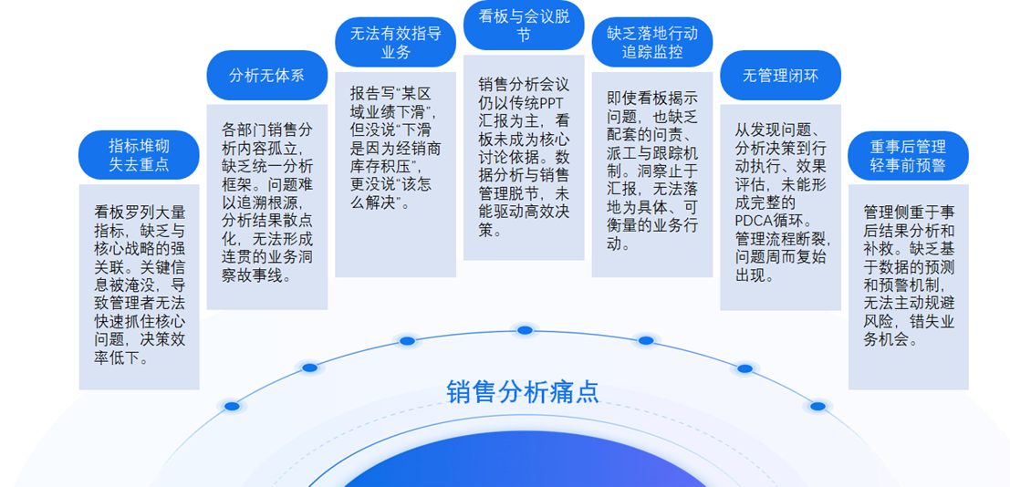 太多团队遇到"销售分析困境":报表堆了几十页,开会扯了两小时,最后还是"没结论、没动作、没结果"。今天就扒一扒销售分析的7个典型痛点,再送一套能落地的闭环解法。