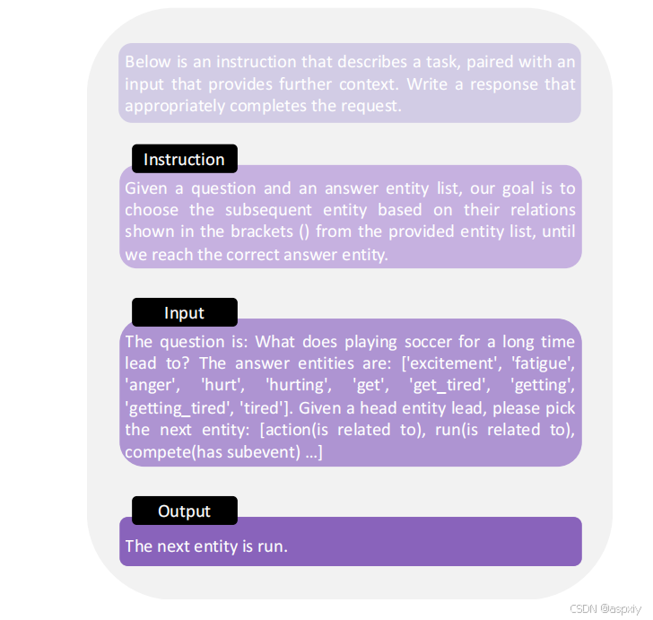 为了帮助模型完成需要特定领域知识的任务(如问答),我们将外部知识注入到LLMs中。对于每个检索到的子图Gsub,我们将其实体和关系转化为文本提示TK,输入到LLMs中,并利用LLMs强大的泛化能力,激励它们自主搜索必要信息。