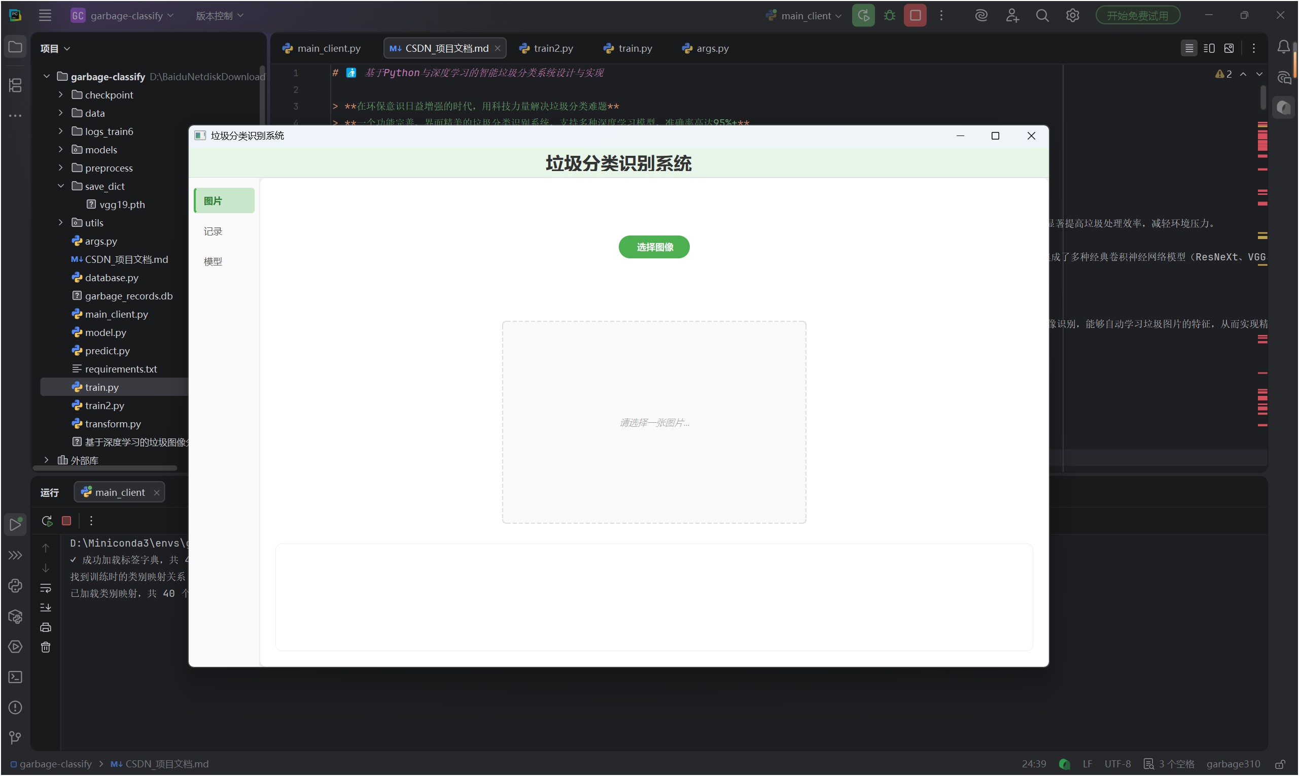 一个功能完善、界面精美的垃圾分类识别系统,支持多种深度学习模型,准确率高达95%+