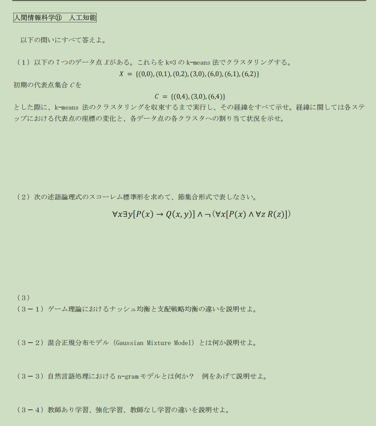 为了应对大学院考试,我们来学习相关人工智能相关知识,并做各种练习。