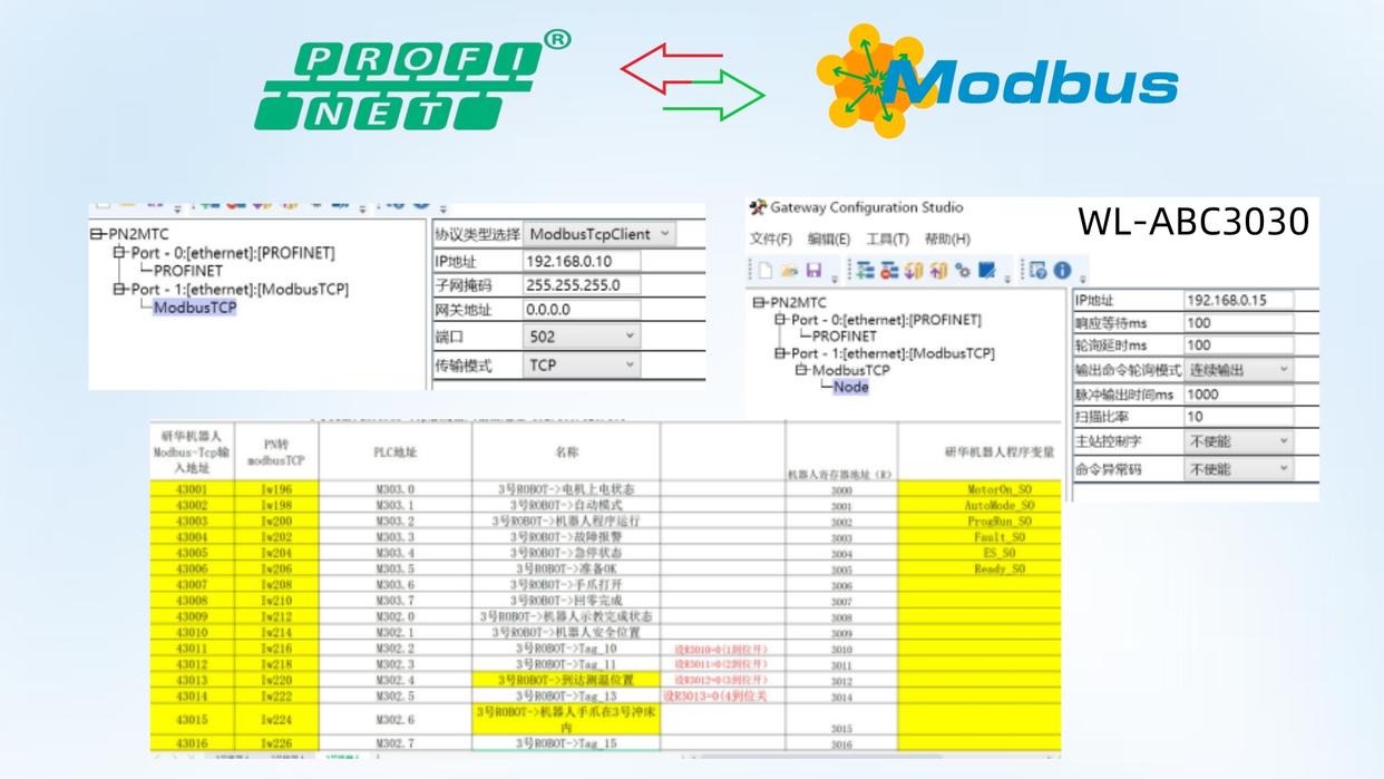 本方案面向智能产线物料转运、自动化仓储分拣场景,通过Profinet-ModbusTCP协议转换网关,实现西门子S7-1500PLC(Profinet主站)对ModbusTCP协议机器手臂的远程控制、点位调度与状态监控。解决了高端PLC控制系统与通用协议机器人的异构通信难题,支持机器人自动取放、路径规划、故障报警等核心功能,适配柔性化生产需求。