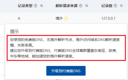阿里云:您使用的免费版DNS,无海外解析节点,海外访问域名DNS解析速度慢、失败率高。
