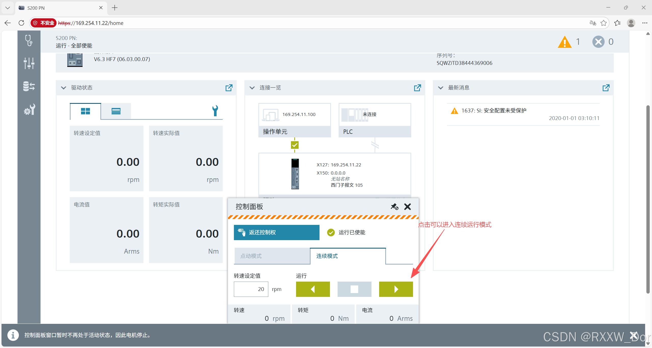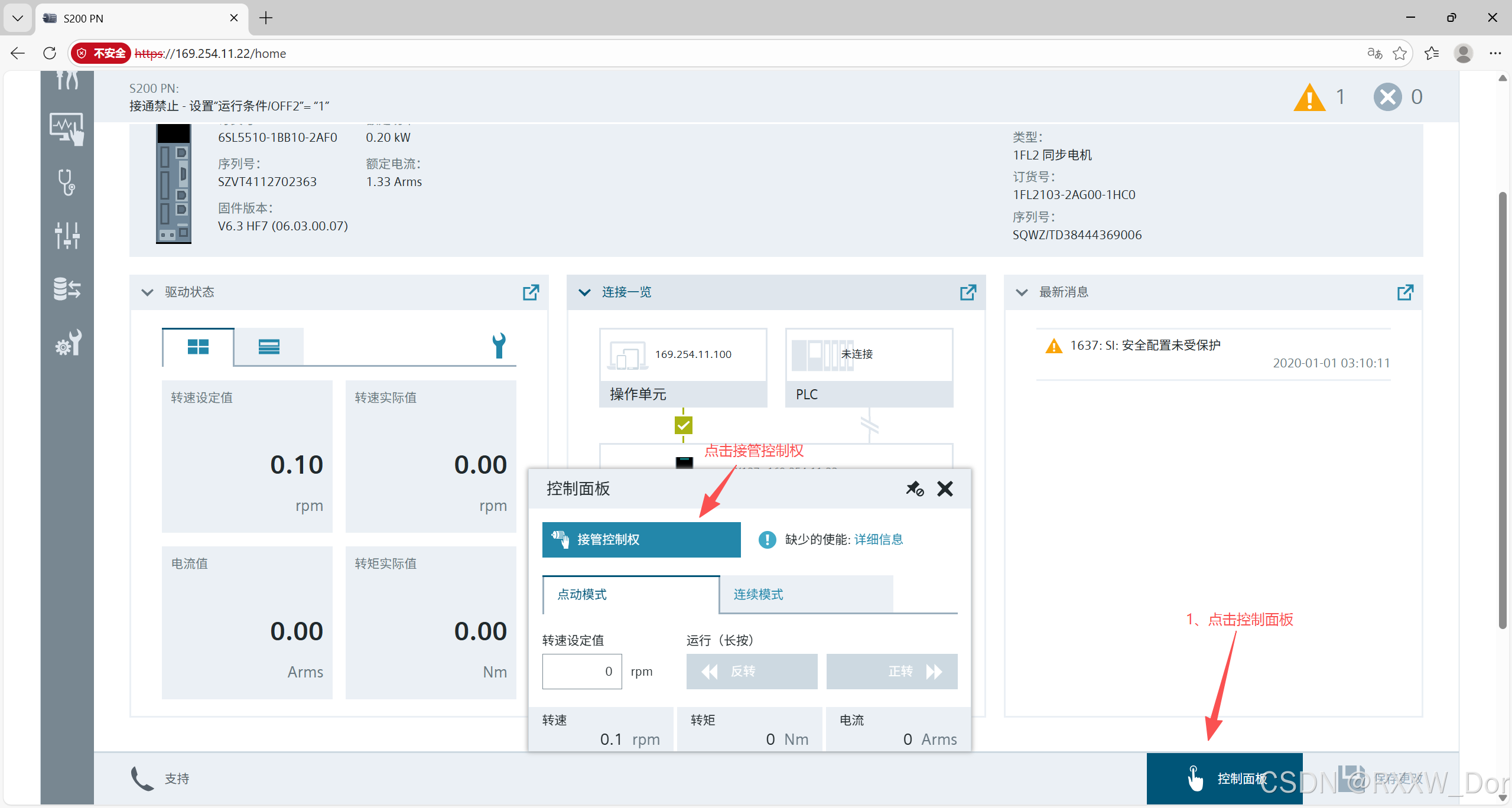 西门子S200驱动器通过网页浏览器访问和设置参数。