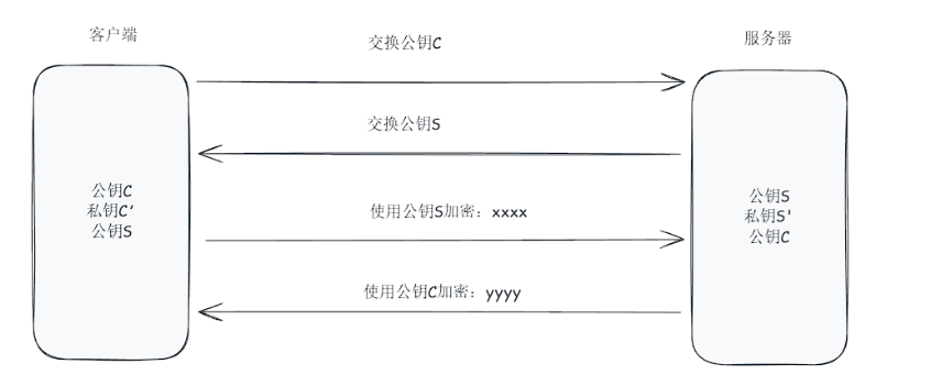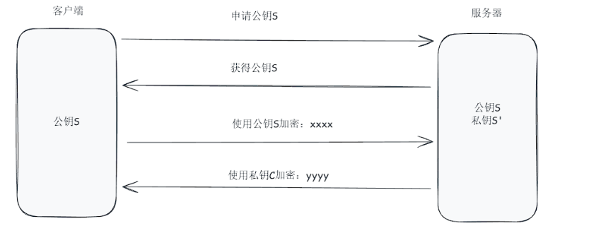 - 服务端拥有公钥S与对应的私钥S',客户端拥有公钥C与对应的私钥C'