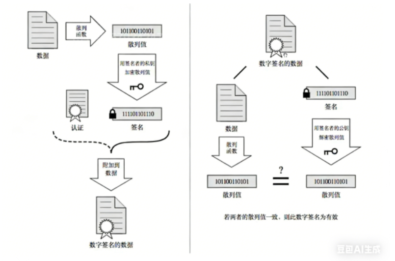 而是因为:哈希提供高效、可靠的完整性校验 ,而私钥签名将该完整性与身份绑定,