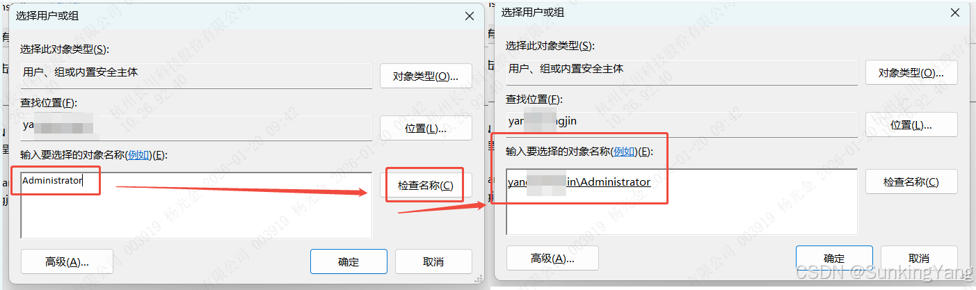 Administrators),点击检查名称 →确定 。