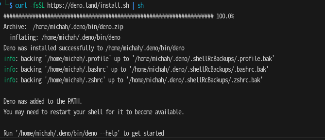 curl -fsSL https://deno.land/install.sh | sh