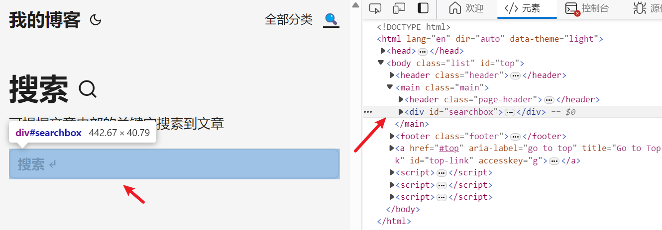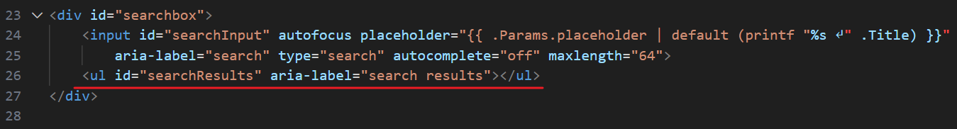 可以看到,这是一个空的无序列表 <ul>,初始时没有内容,当用户在 <input> 中输入关键词时,JavaScript 脚本会动态生成 <li> 列表项插入到这里,显示匹配的搜索结果(一般是文章标题),这里的 aria-label 同样是为了无障碍支持
