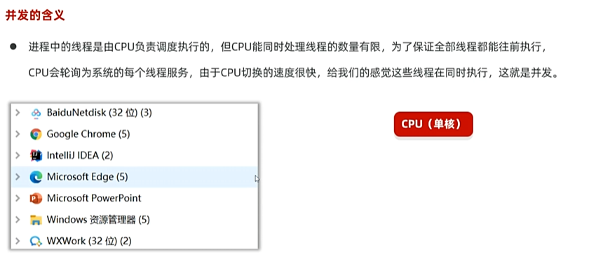 并行的含义:在同一时刻同时有多个线程被CPU调度