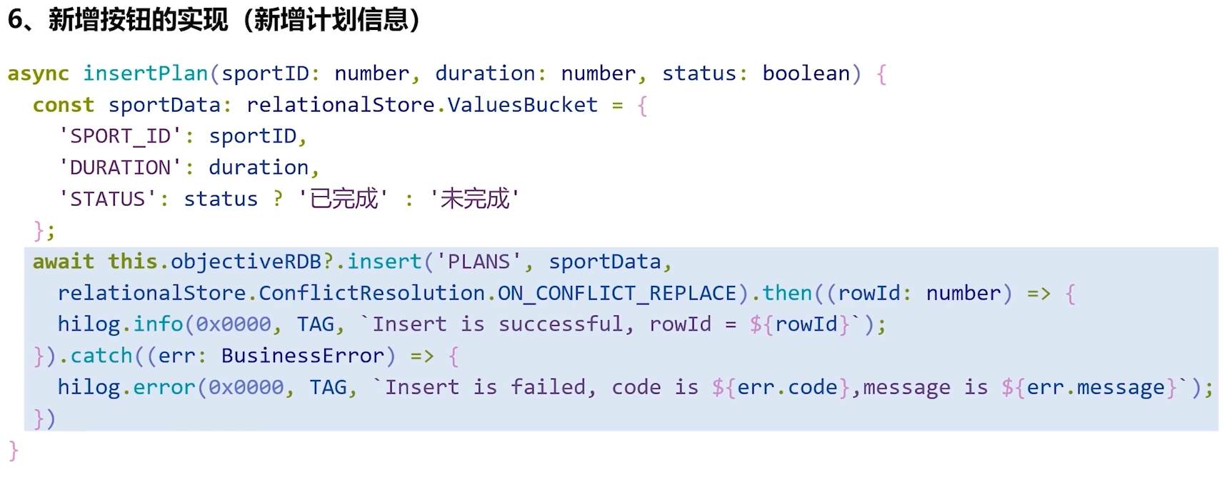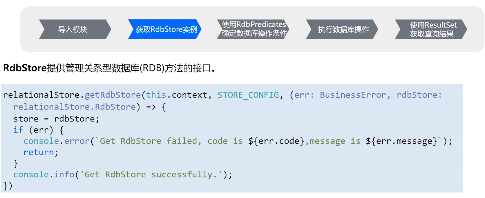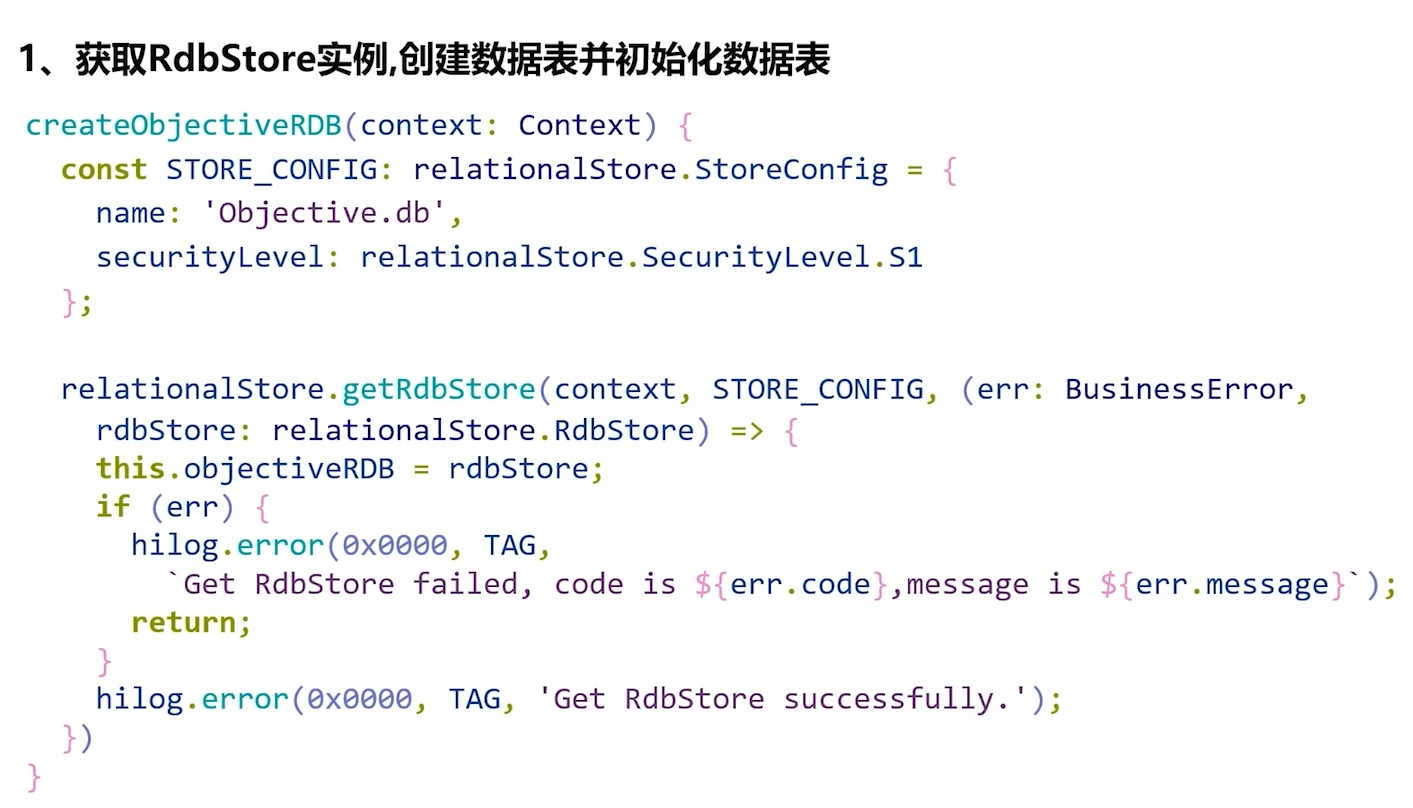 第一步是获取RdbStore实例,我们通过调用getRdbStore方法来实现,并将所得到的实例保存在工具类的一个对象属性里,以便后续方法能够便捷地引用它。