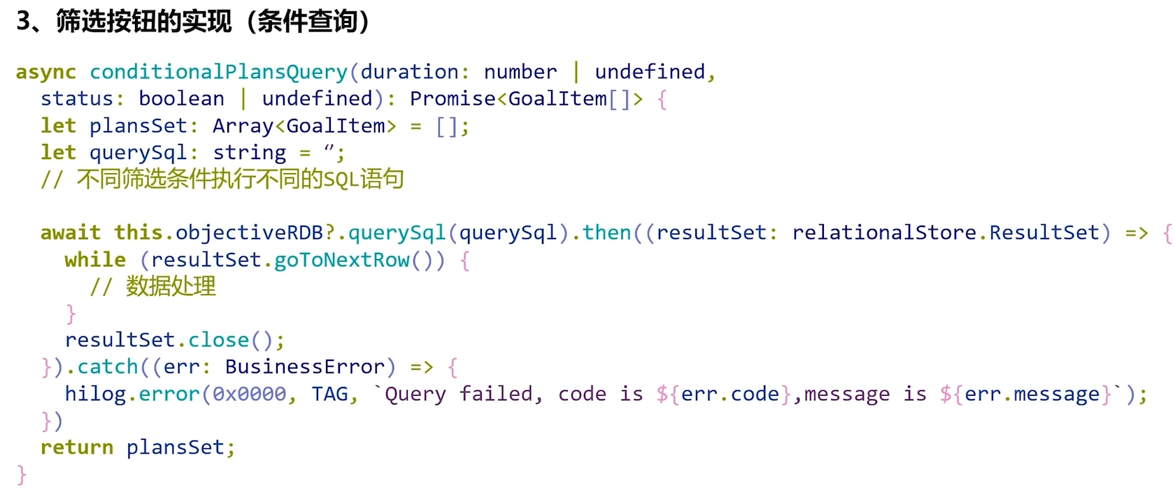 首先我们生命了一个名为resultSet的变量,它的作用是存储执行查询操作后返回的结果集,接着我们使用RdbPredicates设置了筛选条件,即选择EMPLOYEE表中 AGE字段值为18的记录,随后我们执行query操作,并将之前设置的RdbPredicates作为参数传递进去,第二个参数指定了要查询的列,如果此处留空,则表示查询将应用于所有列,最后我们成功获取了ResultSet对象,并对其进行分析和处理,至此我们完成了一个完整的查询操作。