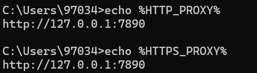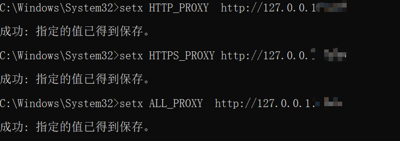 setx HTTP_PROXY http://127.0.0.1:XXXX 注意:这里是我的端口号 需要根据自身情况来定