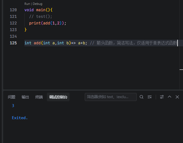 - 注意:返回值类型可以省略,Dart会知道推断类型为dynamic