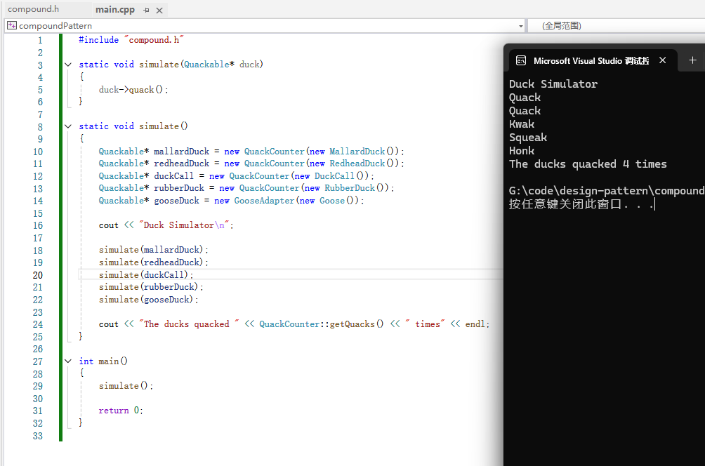 Quackable* redheadDuck = new QuackCounter(new RedheadDuck());