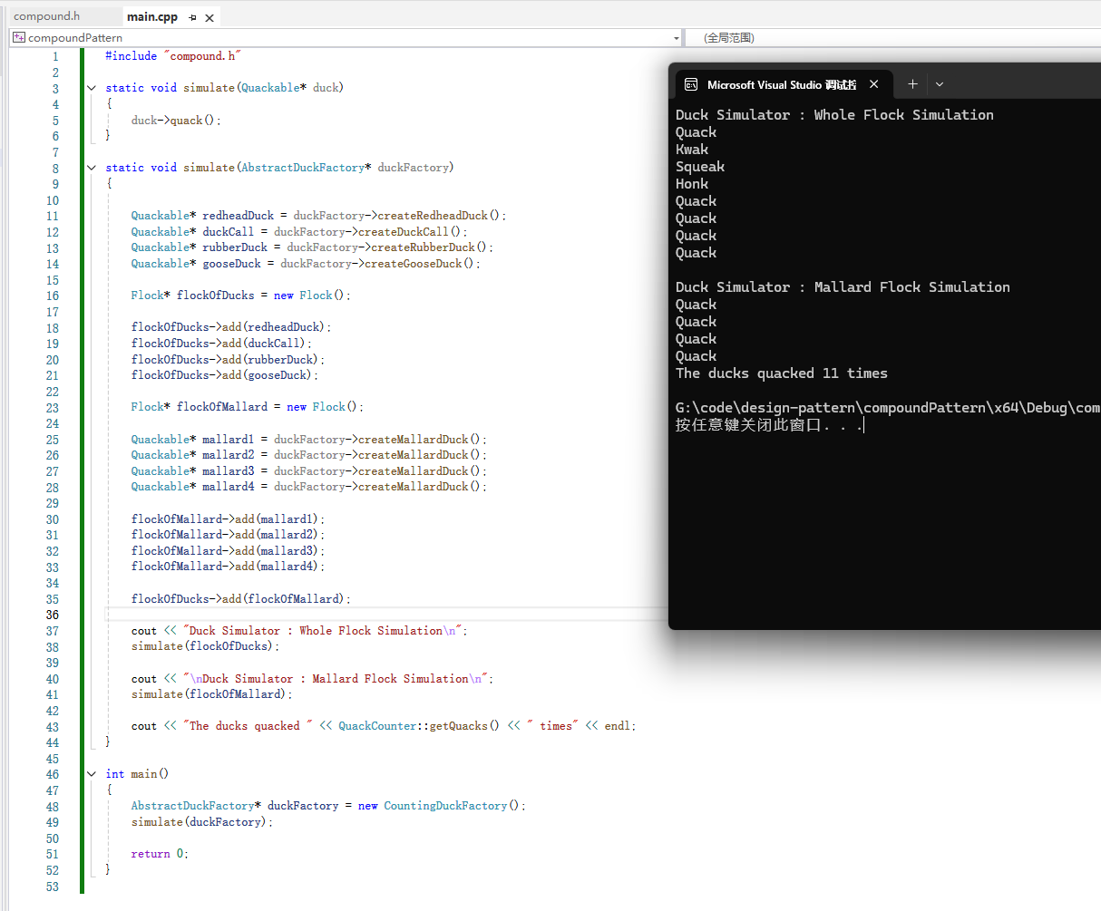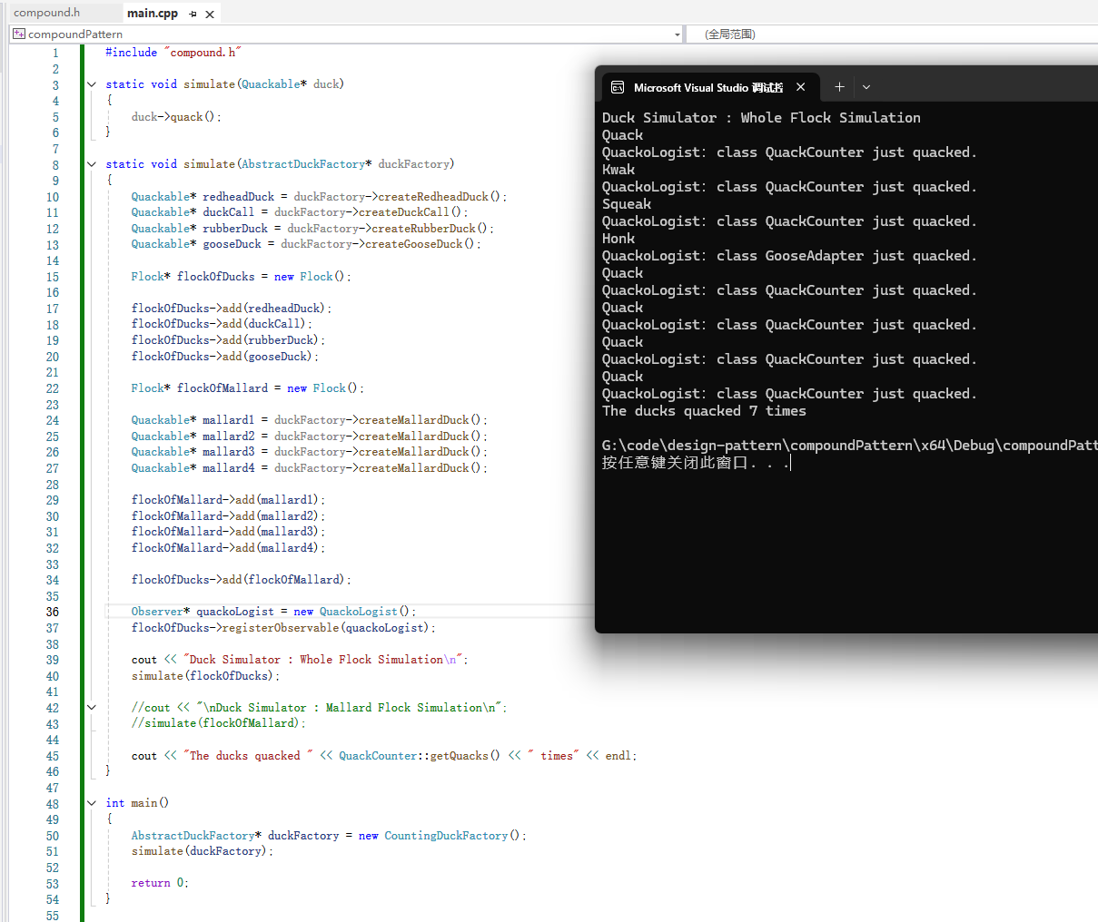 组合运行得很流畅!但现在我们有一个相反的要求:我们还需要跟踪个别的鸭子,支持我们跟踪个别鸭子的实时嘎嘎叫。观察者模式上场。