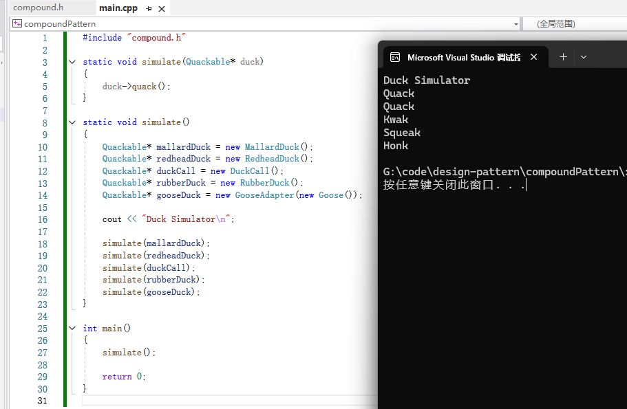 我们制造一个模拟器,这个模拟器会创建一些鸭子,并保证它们会呱呱叫......