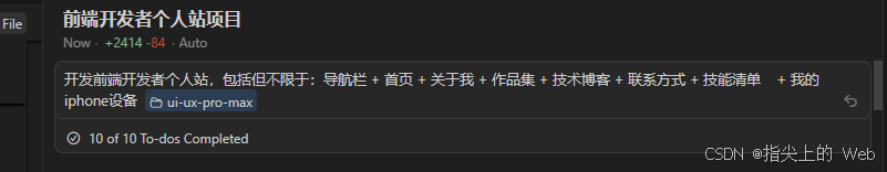 /ui-ux-pro-max 开发前端开发者个人站,包括但不限于:导航栏 + 首页 + 关于我 + 作品集 + 技术博客 + 联系方式 + 技能清单 + 我的iphone设备