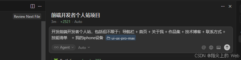 # 在 VS Code 中按 / 键,选择 ui-ux-pro-max 提示词