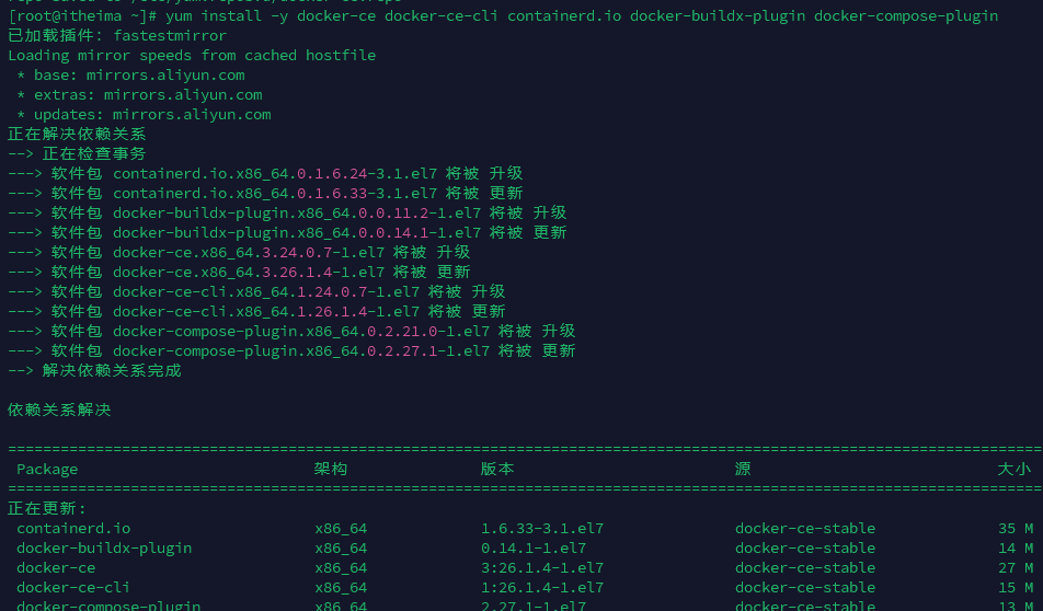 yum install -y docker-ce docker-ce-cli containerd.io docker-buildx-plugin docker-compose-plugin