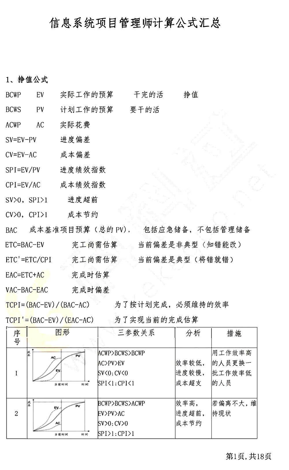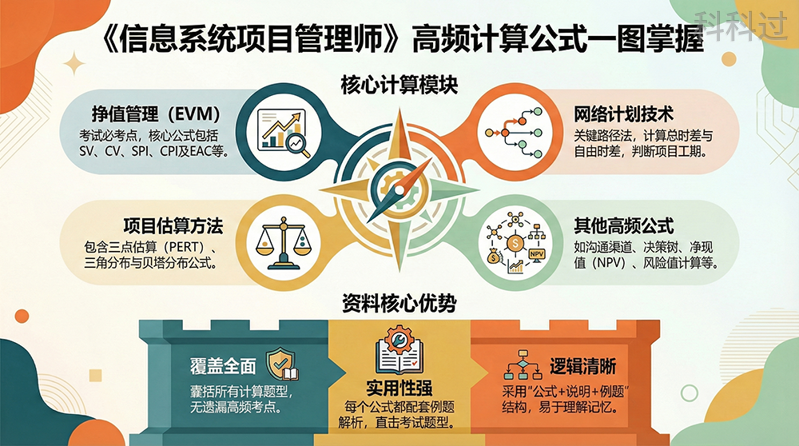 这份《信息系统项目管理师计算公式汇总》PDF共18页,聚焦考试高频计算题考点,覆盖30类核心公式及配套例题,是应对客观题和案例分析计算题的关键资料,核心内容总结如下: