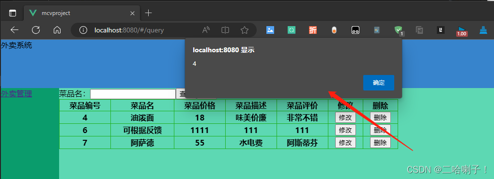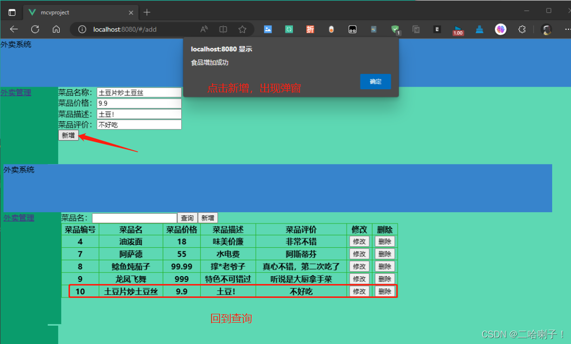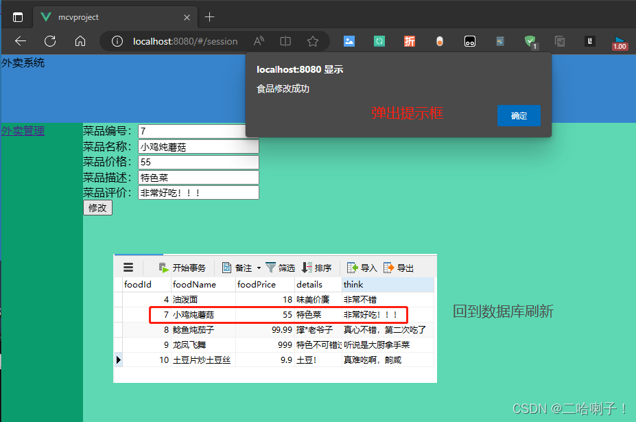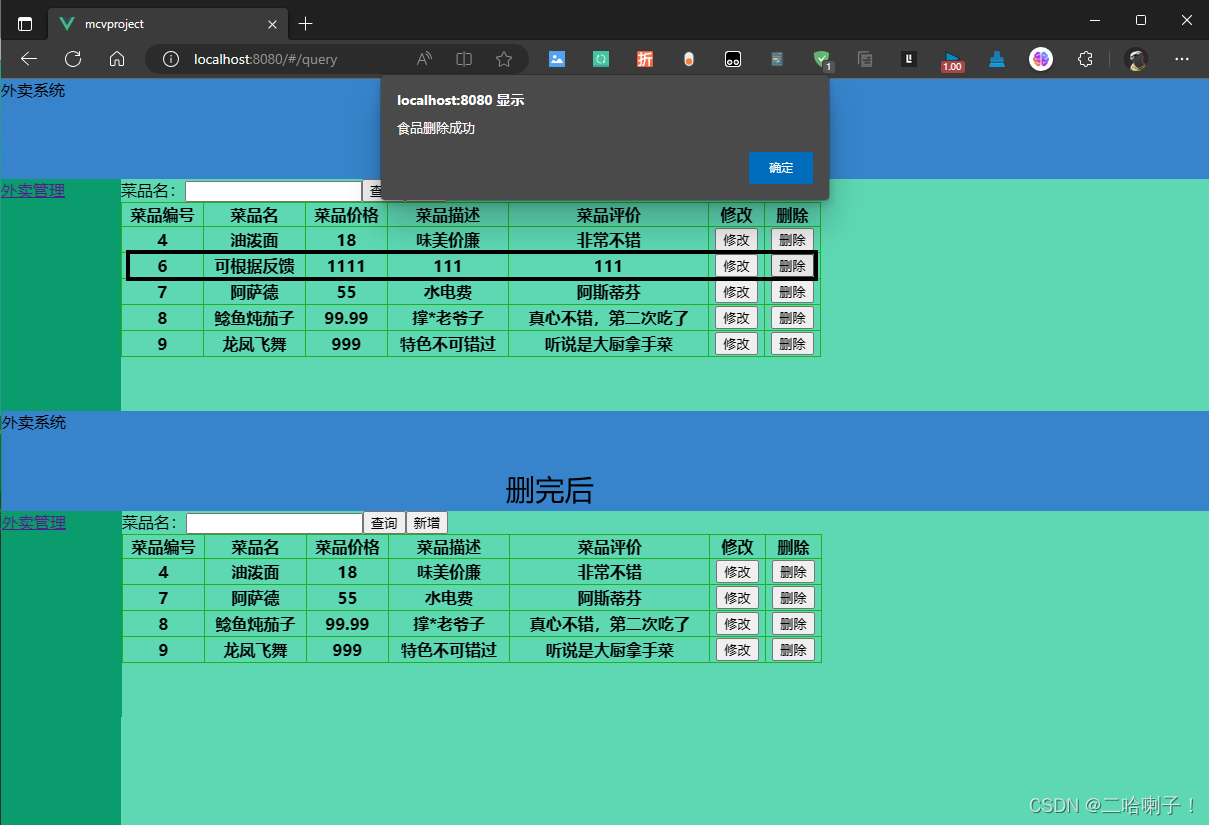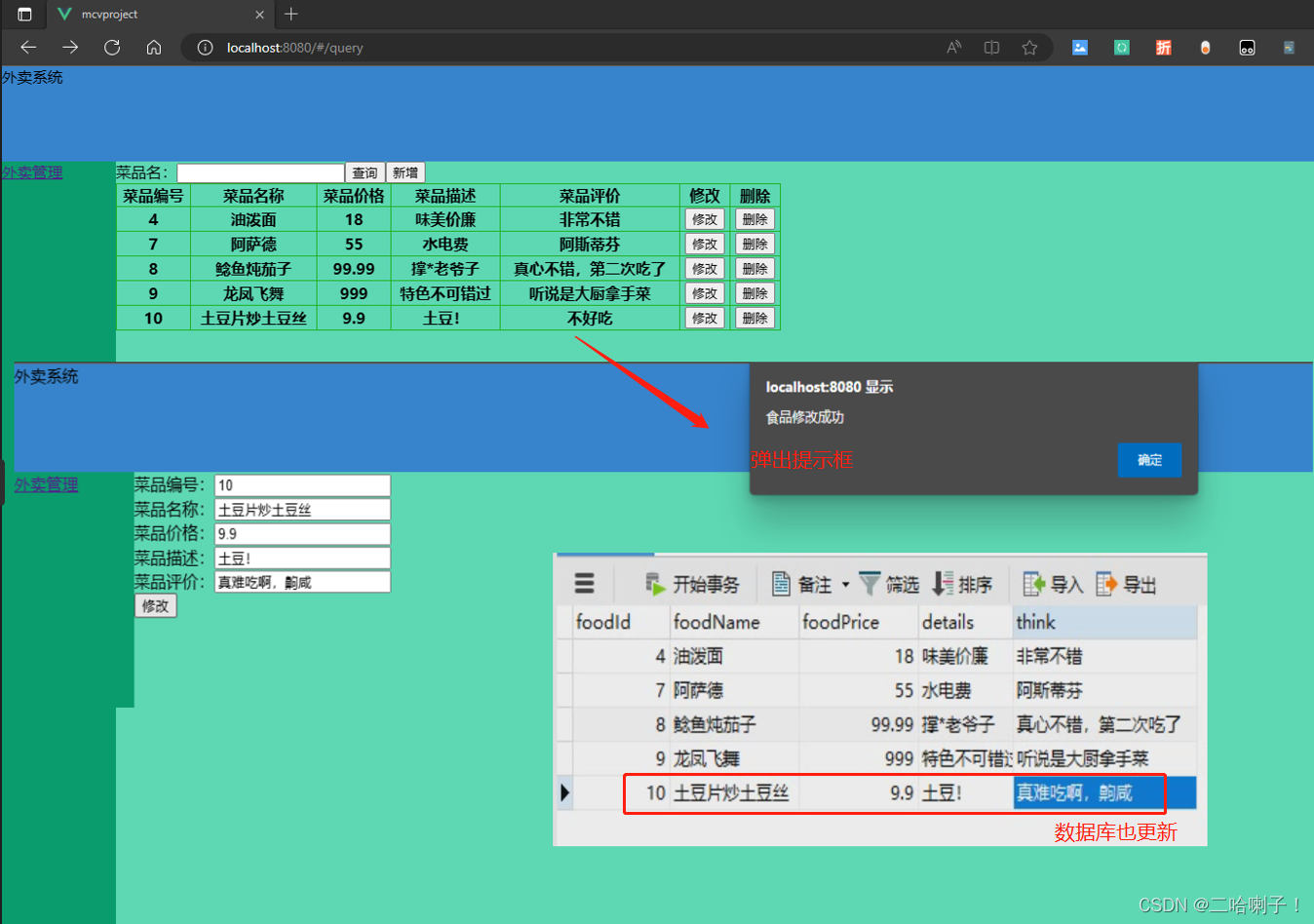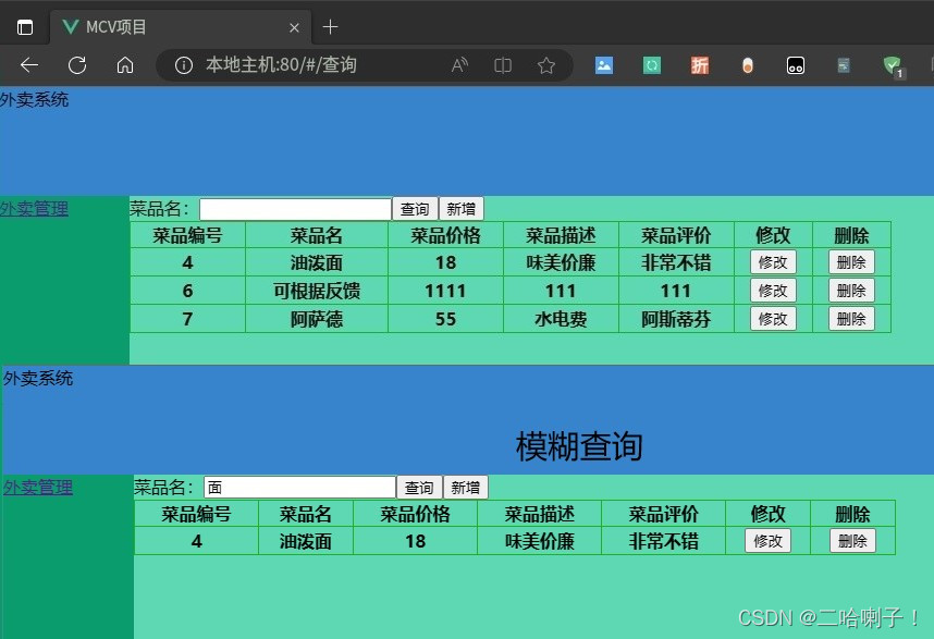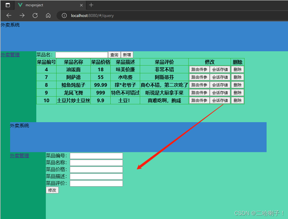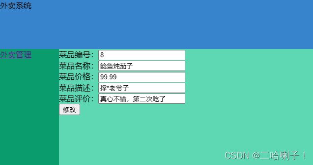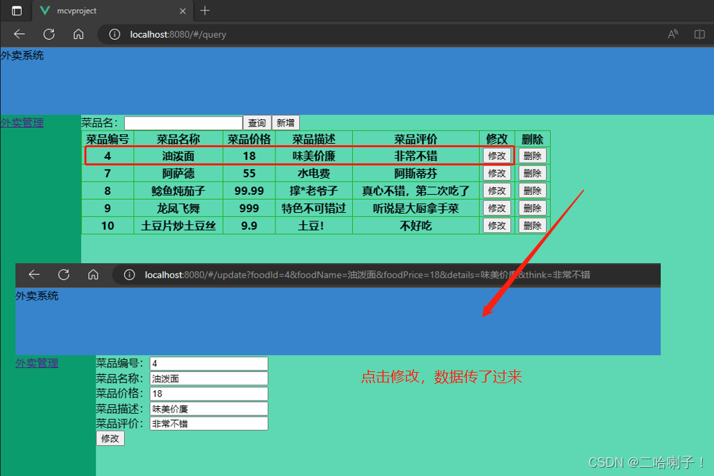 接下来在FoodQuery页面的修改按钮中再加一个修改按钮: