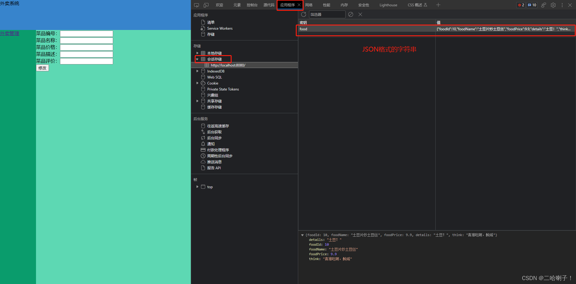 随后再运行一遍,打开开发者工具查看应用→会话存储