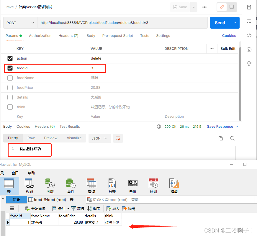 在FoodUpdateSession视图下删除data中的数据,变成: