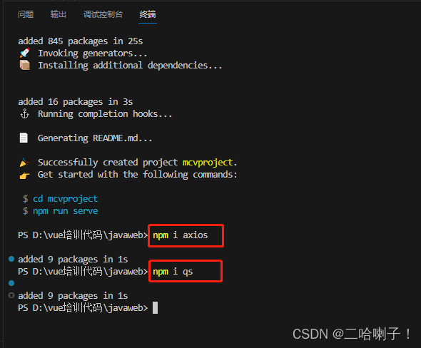 先导入ajax请求导入axios框架,因为要发数据,所以也导入qs框架