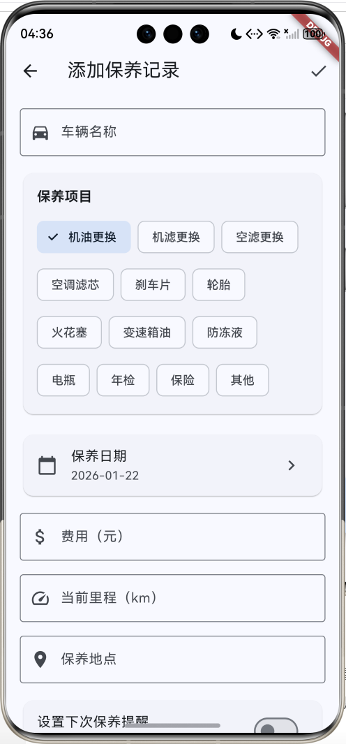 车辆保养记录器是一款专业的Flutter应用,帮助车主记录和管理车辆保养信息。通过智能提醒功能,确保按时保养,延长车辆使用寿命。应用支持多车辆管理、费用统计、保养提醒等实用功能。