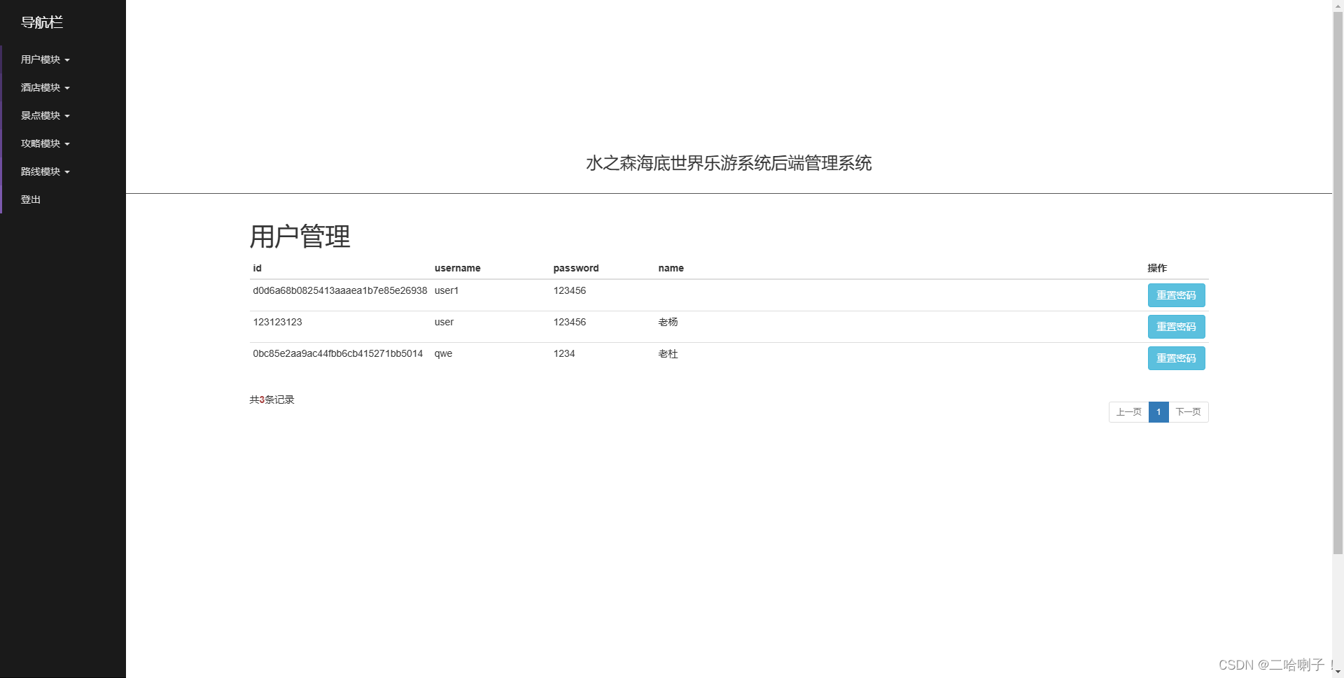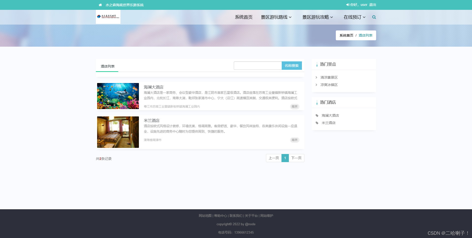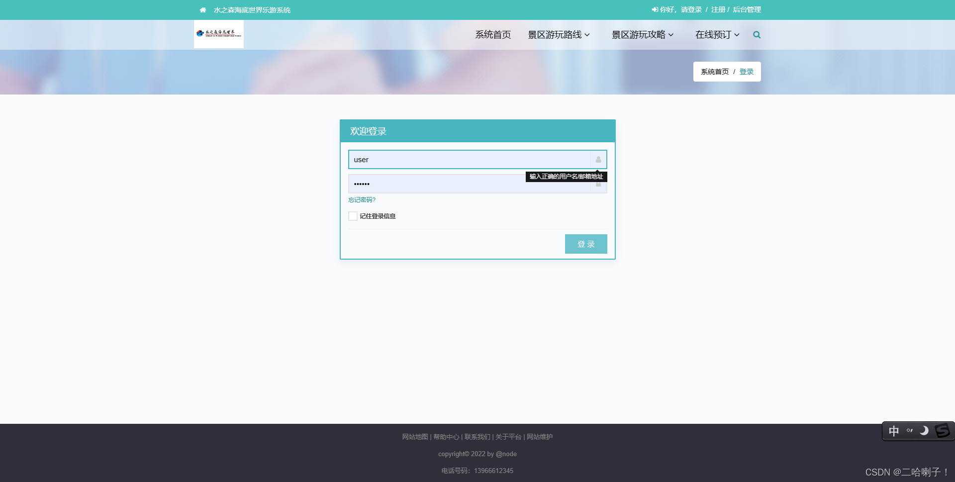 前端用户:http://localhost:8080/travel/【注册、user/123456】 后端管理员:http://localhost:8080/travel/system【admin/admin】