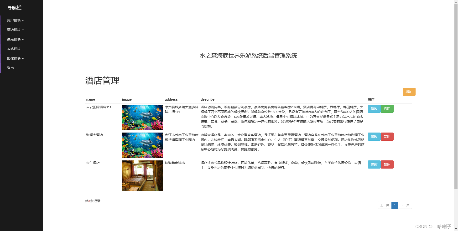(8)酒店管理(管理员对景区酒店的管理)